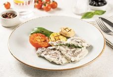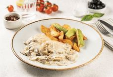 270 г • Паста с шампиньонами и ветчиной в сливочном соусе.