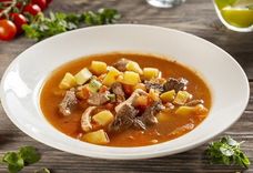 220/60 г • Сытный мясной суп с говядиной, курицей, свининой и овощами.