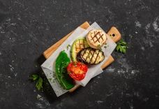 85/120 г • Огурчики, помидоры черри, редиска, салатный микс и шпинат. Подаём с перепелиным яйцом. Заправляем сметаной или маслом на выбор.