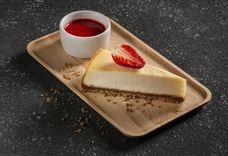 130 г • Тонкий песочный корж, сливочный сыр и соус из чёрной смородины